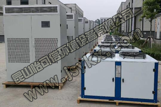 在傳統(tǒng)的恒溫恒濕空調(diào)系統(tǒng)設(shè)計(jì)中,在溫度和濕度的控制上,機(jī)組有風(fēng)冷和水冷型兩種,配備有多級電加熱器和電極加濕罐及微電腦控制器。在冷卻祛濕工況條件下,蒸發(fā)盤管使空氣溫度低于露點(diǎn)溫度而去濕,通過加熱器的再熱控制室內(nèi)溫度保持在設(shè)定值。該類機(jī)組由于冷量的調(diào)節(jié)一般僅二檔或三檔,機(jī)組出口空氣的露點(diǎn)溫度不易穩(wěn)定,對室內(nèi)相對濕度的控制能力較低,一般宜用于相對濕度控制精度在±5%的試驗(yàn)室,目前大多采用了該種定型產(chǎn)品。簡單來說就是冷卻、加溫、除濕的過程。雖然效果比較明顯,但是很顯然這個(gè)過程的當(dāng)中的空調(diào)能耗會比較大,尤其在濕度比較高的環(huán)境下,既要保證除濕的效果,又要保證預(yù)設(shè)的溫度,此時(shí)的耗能量將遠(yuǎn)遠(yuǎn)大于一般機(jī)房空調(diào)的耗能量。為了避免這種情況,再設(shè)計(jì)上可以將室外空氣處理到機(jī)器露點(diǎn)再同室內(nèi)回風(fēng)混合,進(jìn)入主空調(diào)箱干冷卻送風(fēng),把送風(fēng)溫差控制在相應(yīng)的規(guī)范范圍內(nèi);直到環(huán)境內(nèi)冷負(fù)荷減小至一定數(shù)值,再用冷卻盤管的冷凍水流量或進(jìn)水溫度的改變來調(diào)節(jié)冷量,進(jìn)一步減小送風(fēng)溫差。在這類空調(diào)工程設(shè)計(jì)中,應(yīng)該對其能耗和節(jié)能問題給予特別重視,提倡棄用二次加熱,以降低能耗。